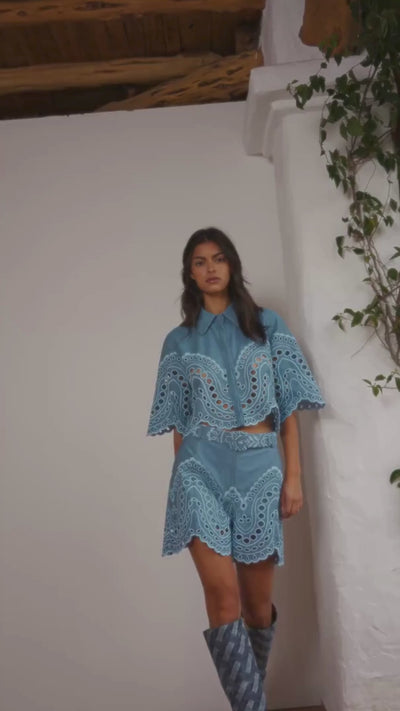 The STORM blouse is a design with a bold spirit. Crafted from embroidered cotton, it features a boxy cut and slightly cropped length that bring a sense of lightness and ease to any look.